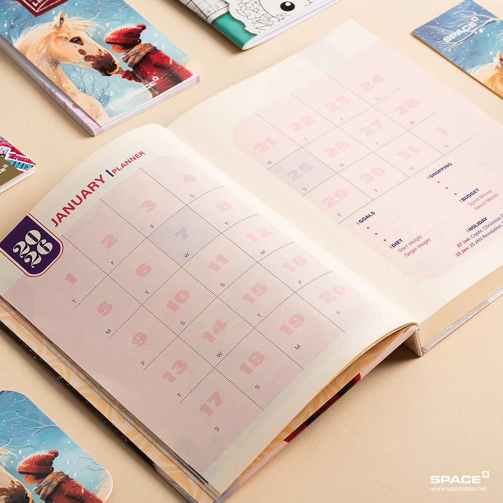 : Daily Agenda 2026 , Stickers Booklet , Pen , Haram Complete-2 Game , Todo List , Activity Booklet , Wall Planner , 2 Bookmarks , Mini Desk Calendar , 2 Coasters [Double Layers] , Gift Card