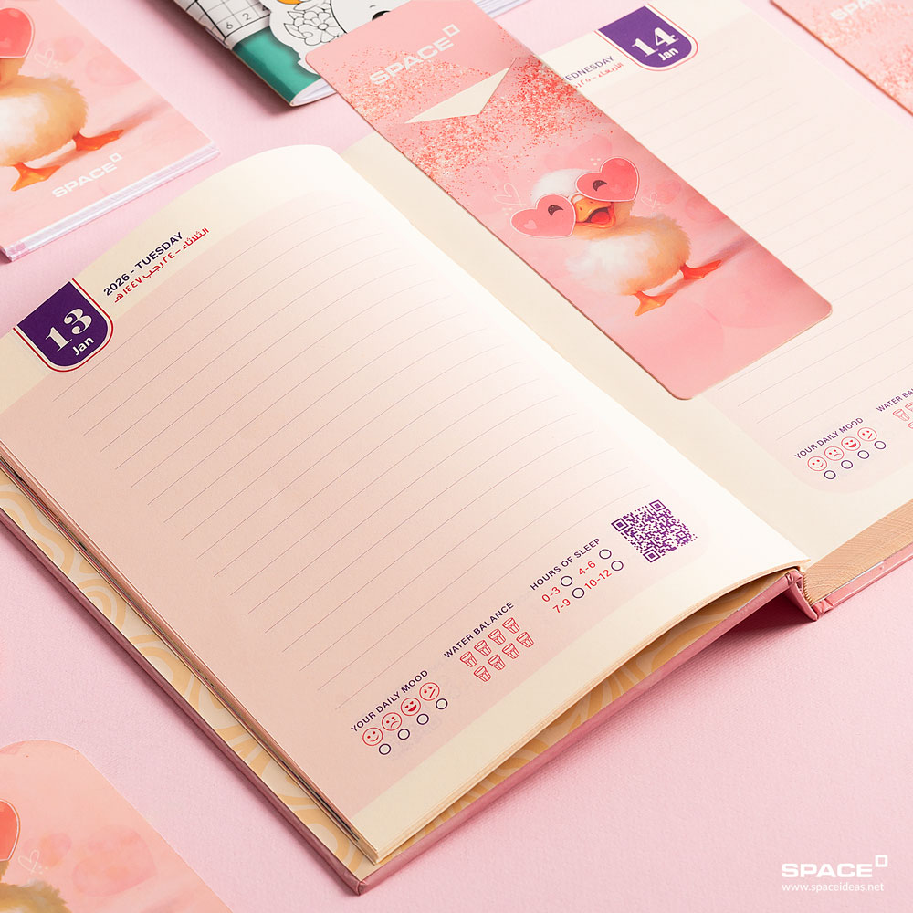 : Daily Agenda 2026 , Stickers Booklet , Pen , Haram Complete-2 Game , Todo List , Activity Booklet , Wall Planner , 2 Bookmarks , Mini Desk Calendar , 2 Coasters [Double Layers] , Gift Card