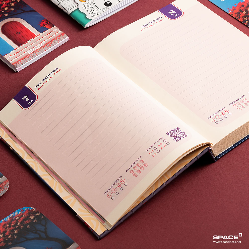 : Daily Agenda 2026 , Stickers Booklet , Pen , Haram Complete-2 Game , Todo List , Activity Booklet , Wall Planner , 2 Bookmarks , Mini Desk Calendar , 2 Coasters [Double Layers] , Gift Card